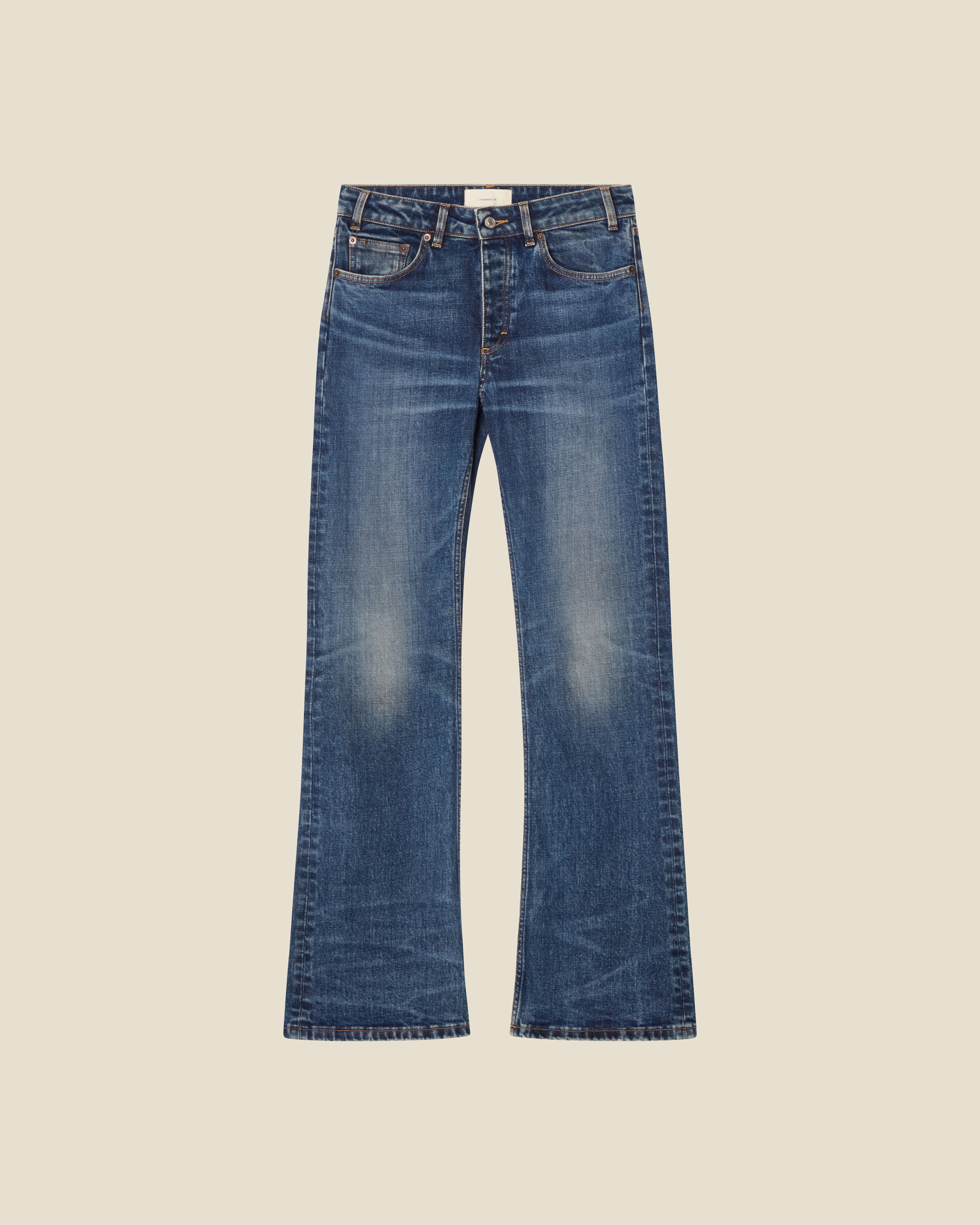 'Moda' is a mid-waist denim with a slim flared leg, designed to enhance the feminine silhouette. The jean features a fitted top and slim leg until the knee, which gracefully widens below. Crafted from 98% cotton with 2% elastane for slight stretch, this contemporary style combines everyday comfort with a touch of retro-inspired elegance.