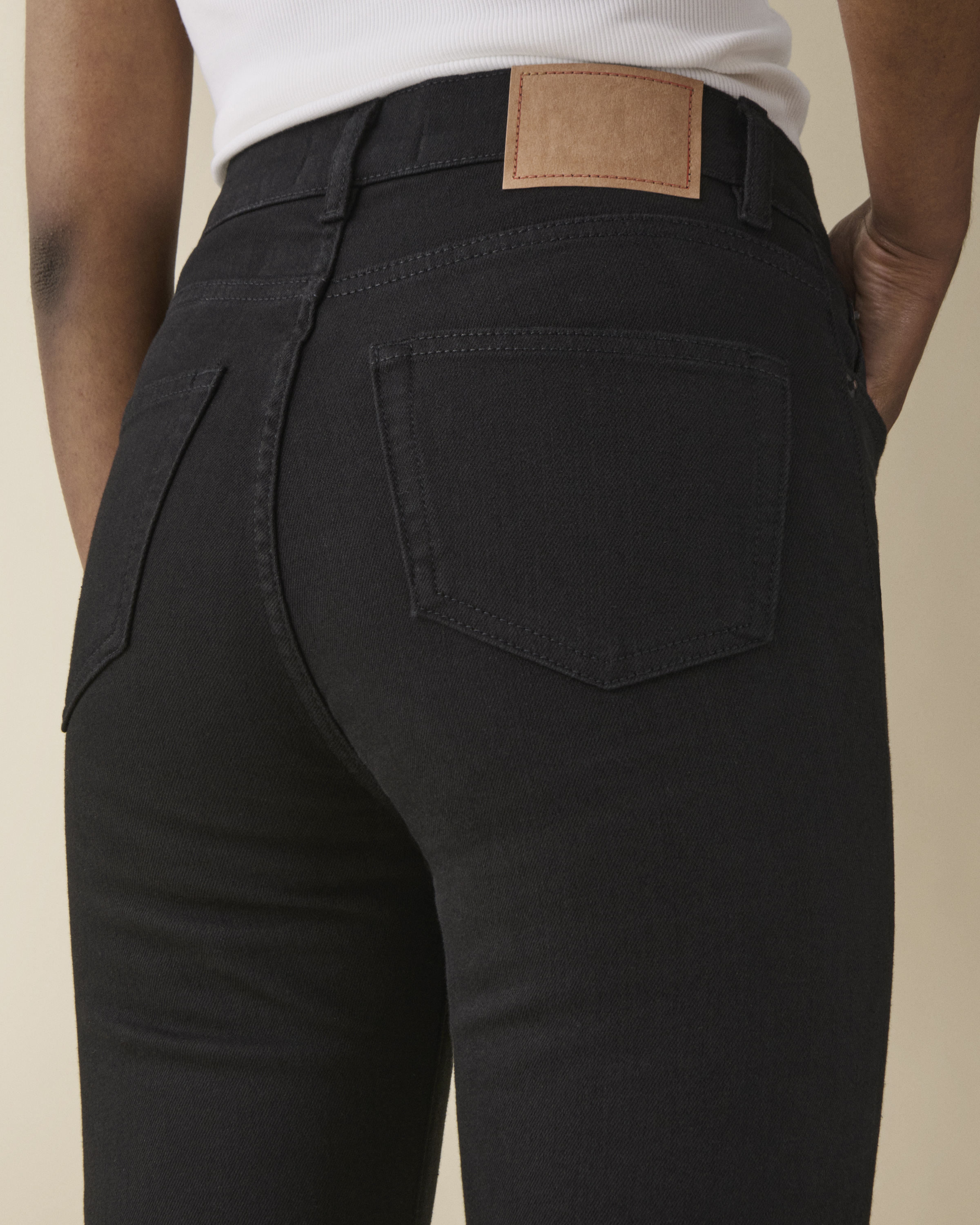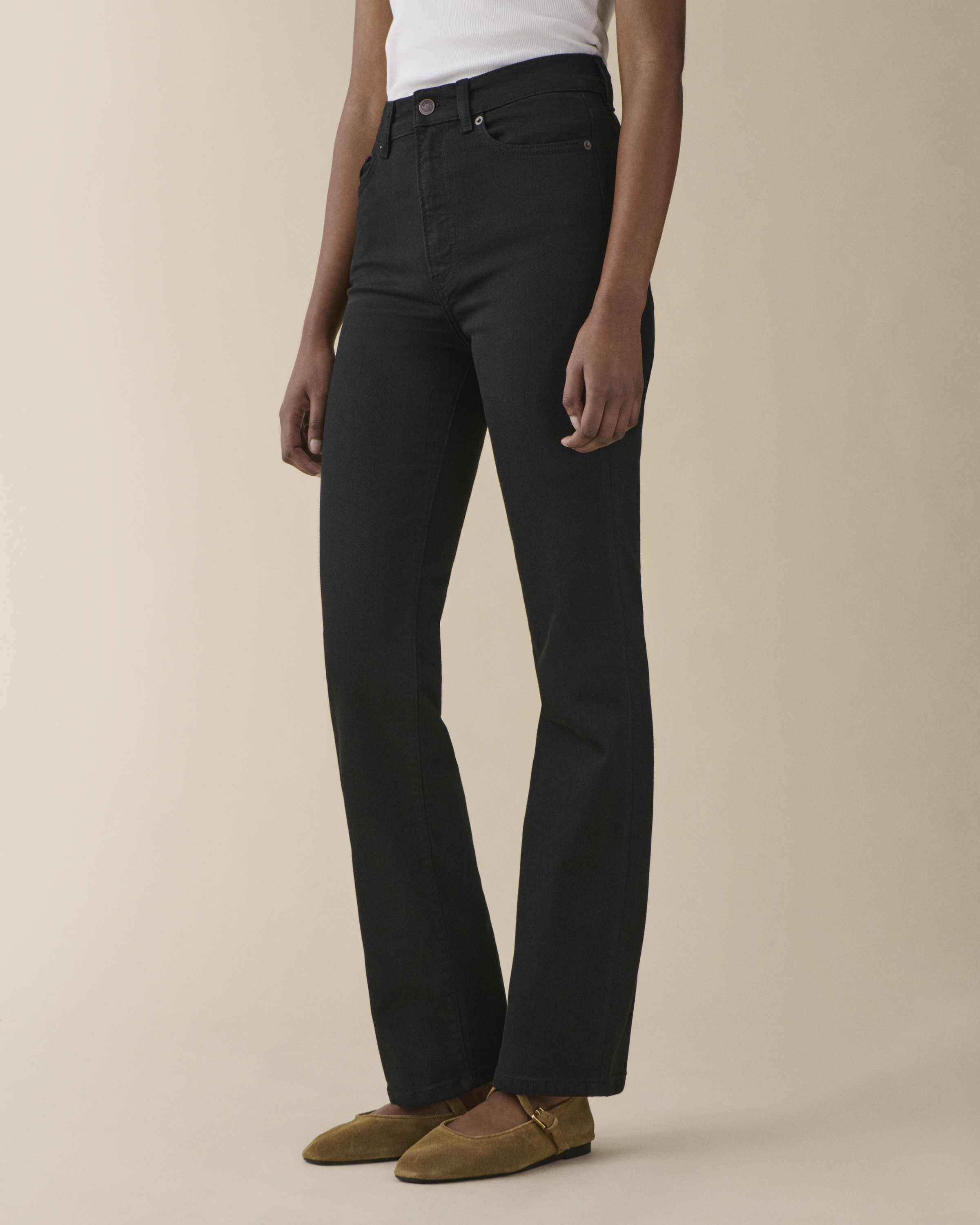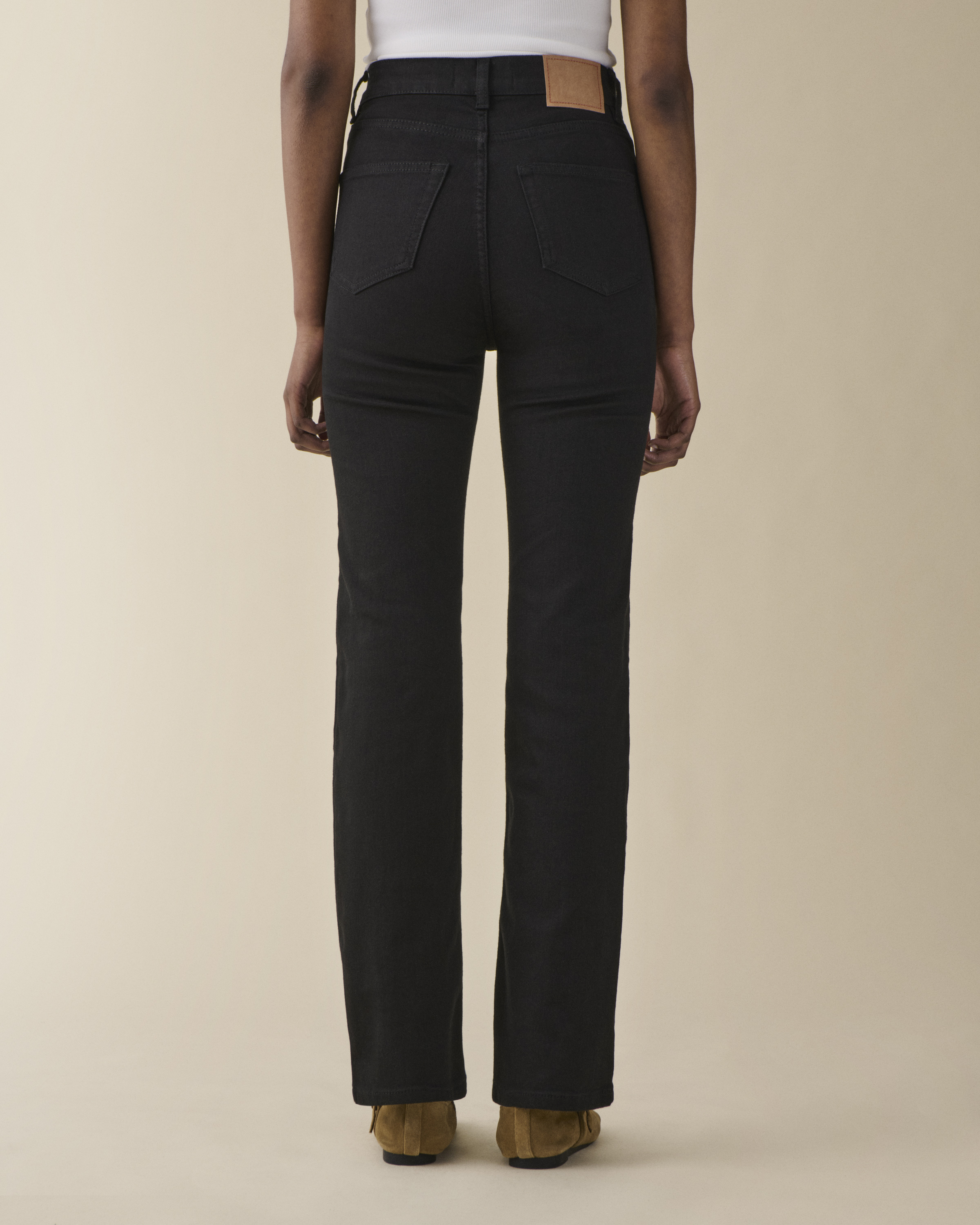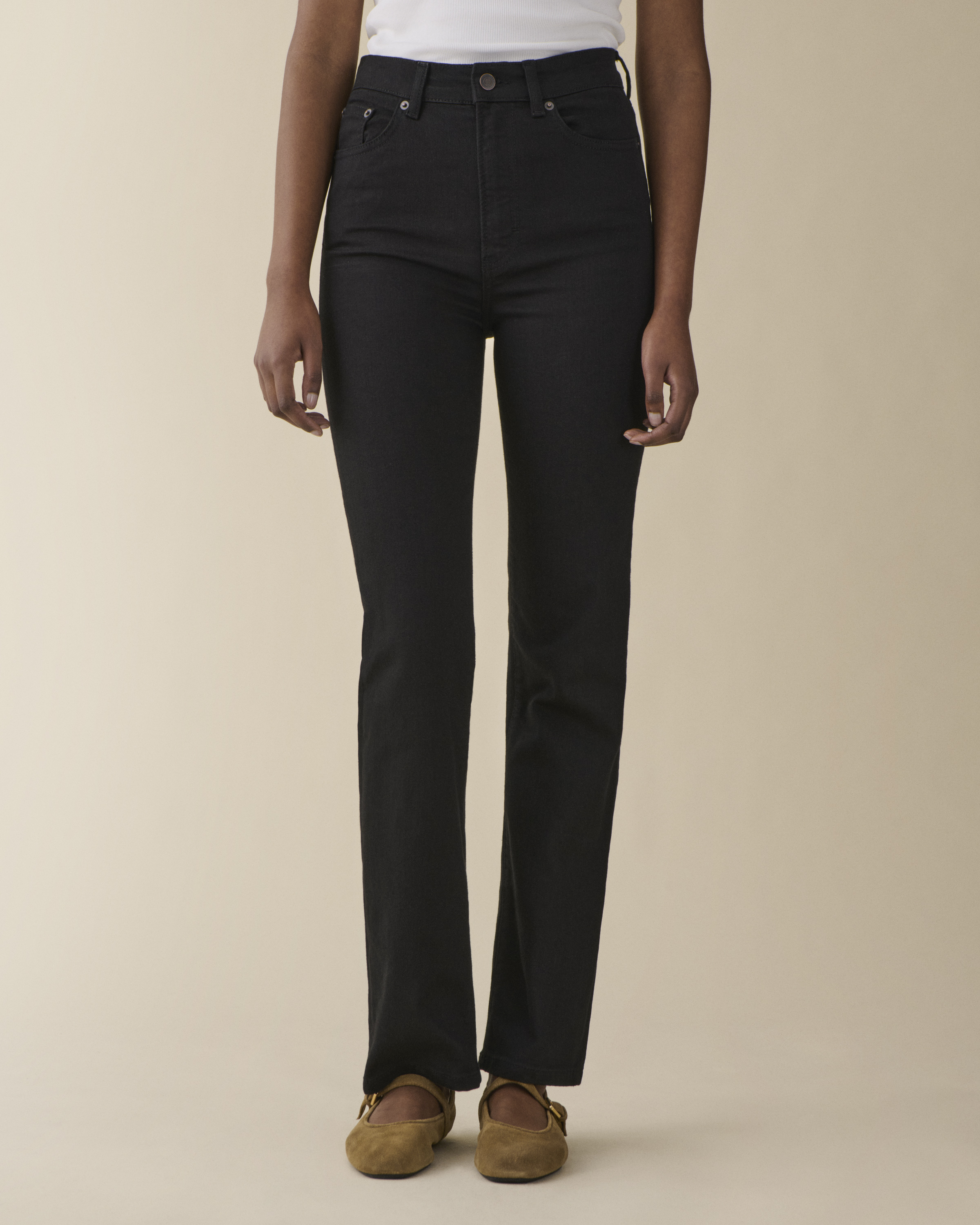 ‘Eiffel’ is a longline 5-pocket silhouette featuring a zip fly, high-rise waist and slim thigh falling to a straight leg. Made in solid black organic denim, with Jeanerica’s signature stretch composition that enriches the jeans with enduring flexibility, while its deep colouring stays the same over time.