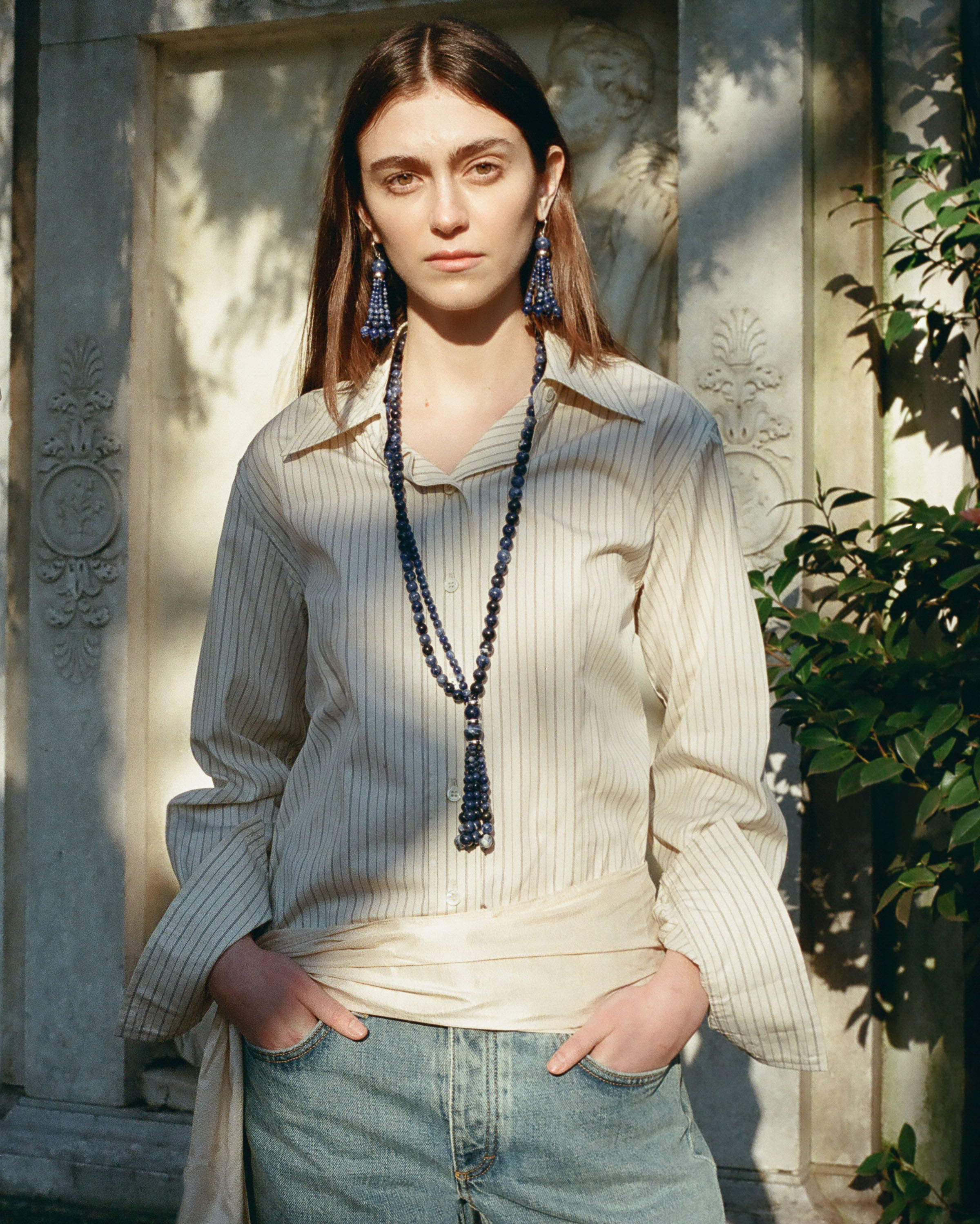 This long opera necklace features an array of sodalite stone beads, ending with a tassel made of stones.Inspired by the beauty of Venice, this piece is crafted with sterling silver details.Each necklace is handmade by artisans in Italy, ensuring uniqueness.A classic Le Sundial design reinterpreted through the lens of JEANERICA.-As part of The Year of Love, JEANERICA’s overarching theme for the year, the brand presents its fourth collaboration under the JEANERICA Atelier concept, created together with Italian jewelry studio Le Sundial. JEANERICA Atelier is imagined as a platform for creative partnerships, craftsmanship, and conceptual collaborations, where each project reinterprets JEANERICA’s universe through the perspective of inspiring creatives.
