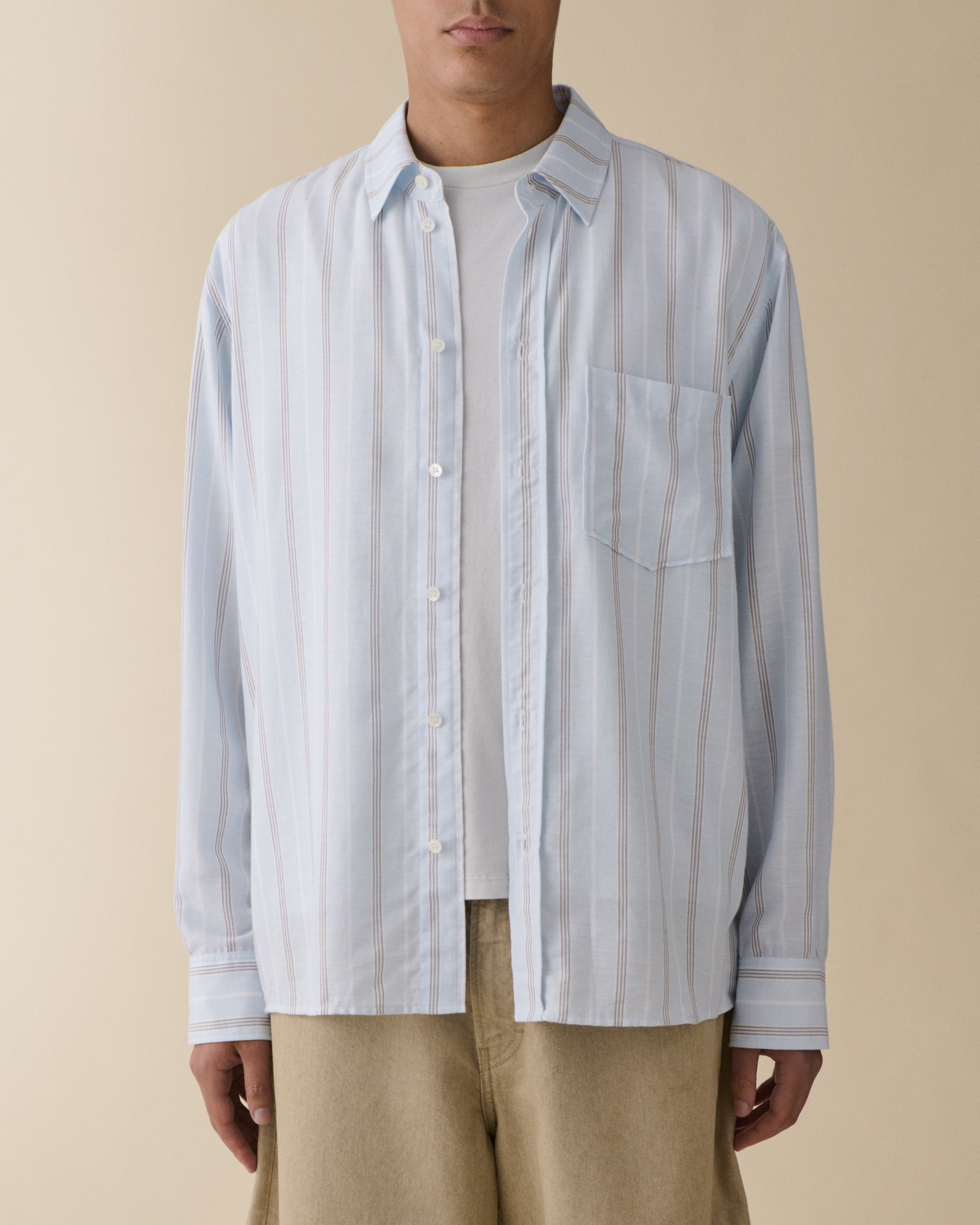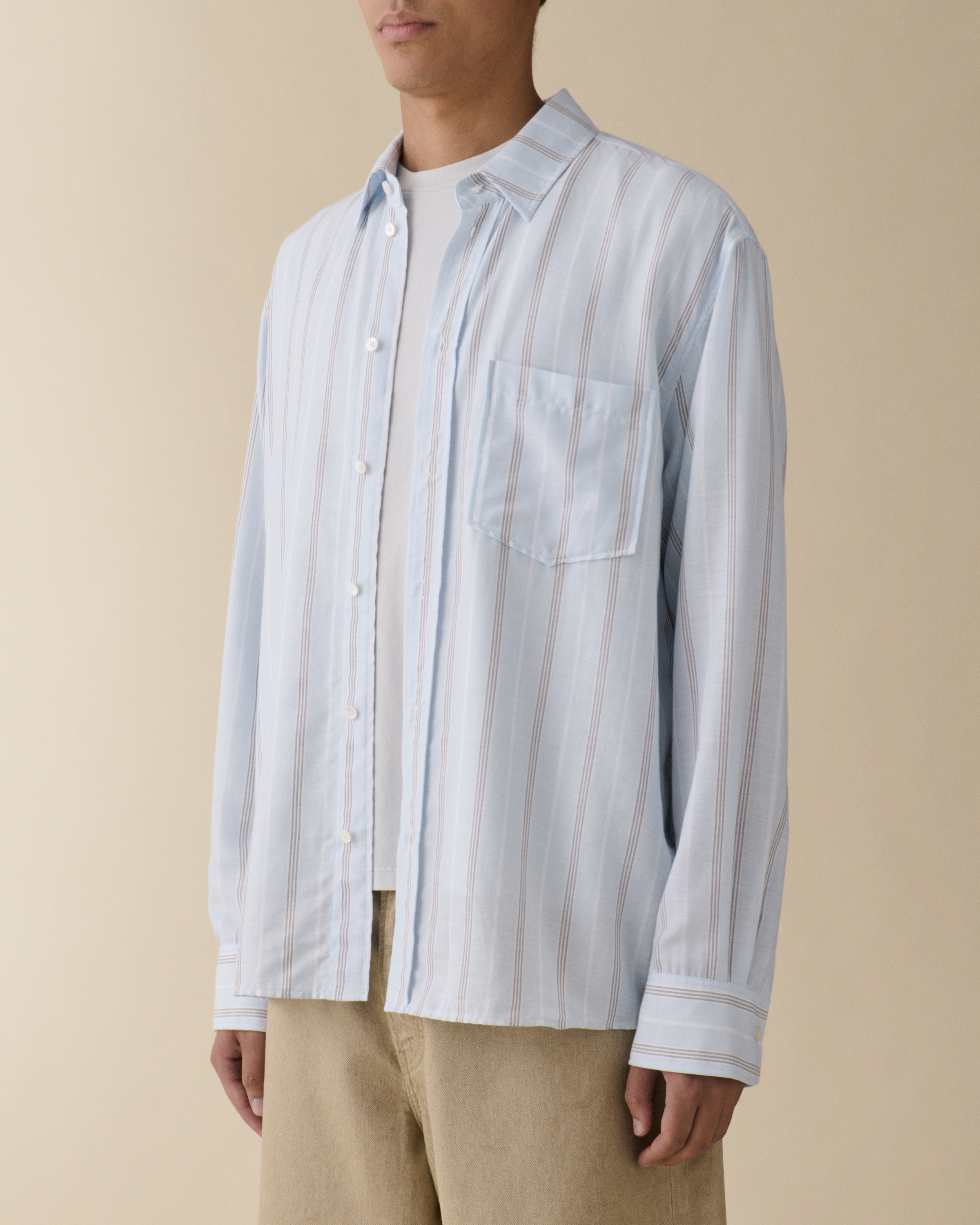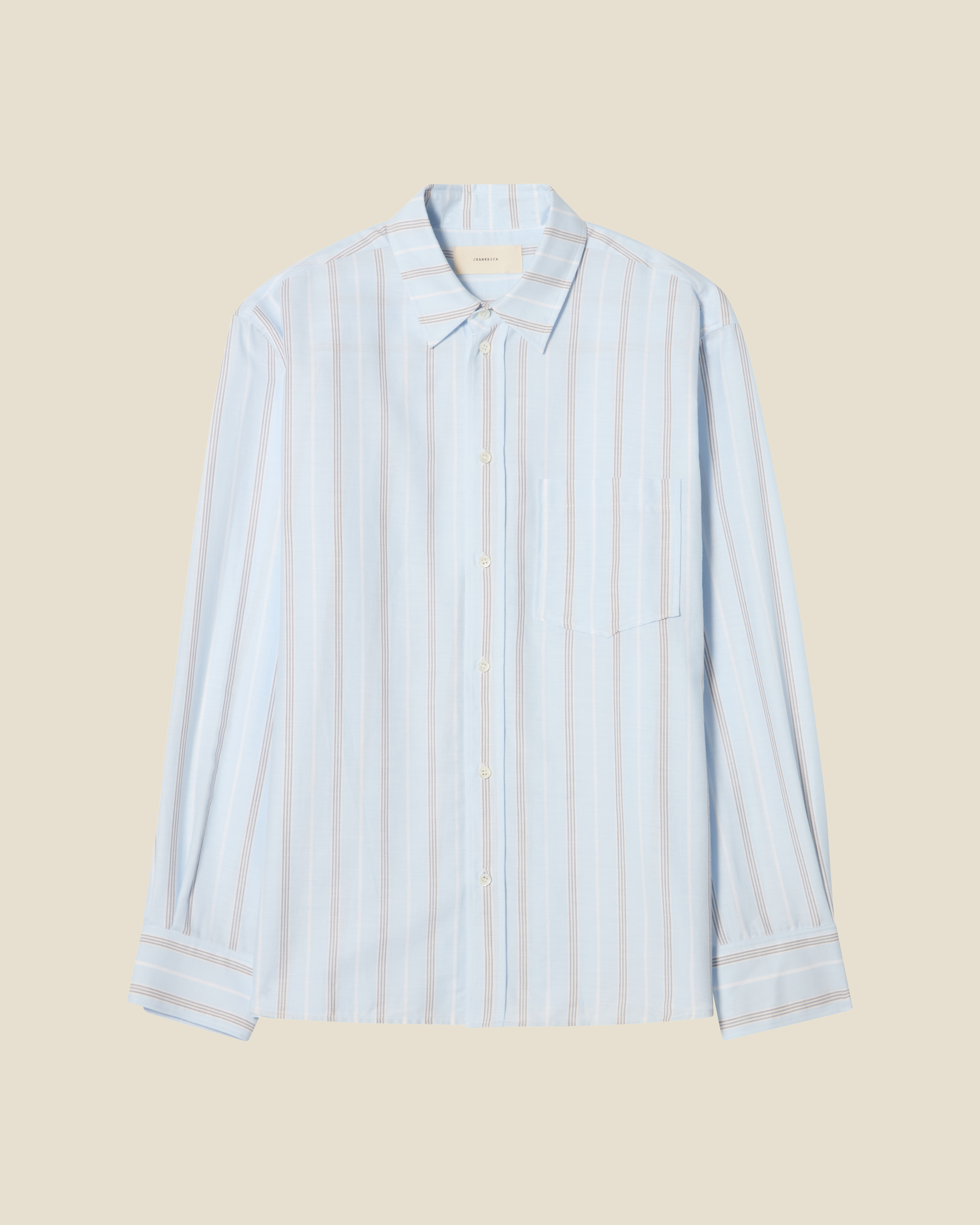 Byron is a classic men's shirt with a slightly boxy fit for contemporary ease. Crafted from 100% premium cotton in a light blue finish, the design features a traditional collar and button-front closure. The clean, minimalist silhouette offers versatile styling potential while maintaining Jeanerica's signature refined aesthetic.