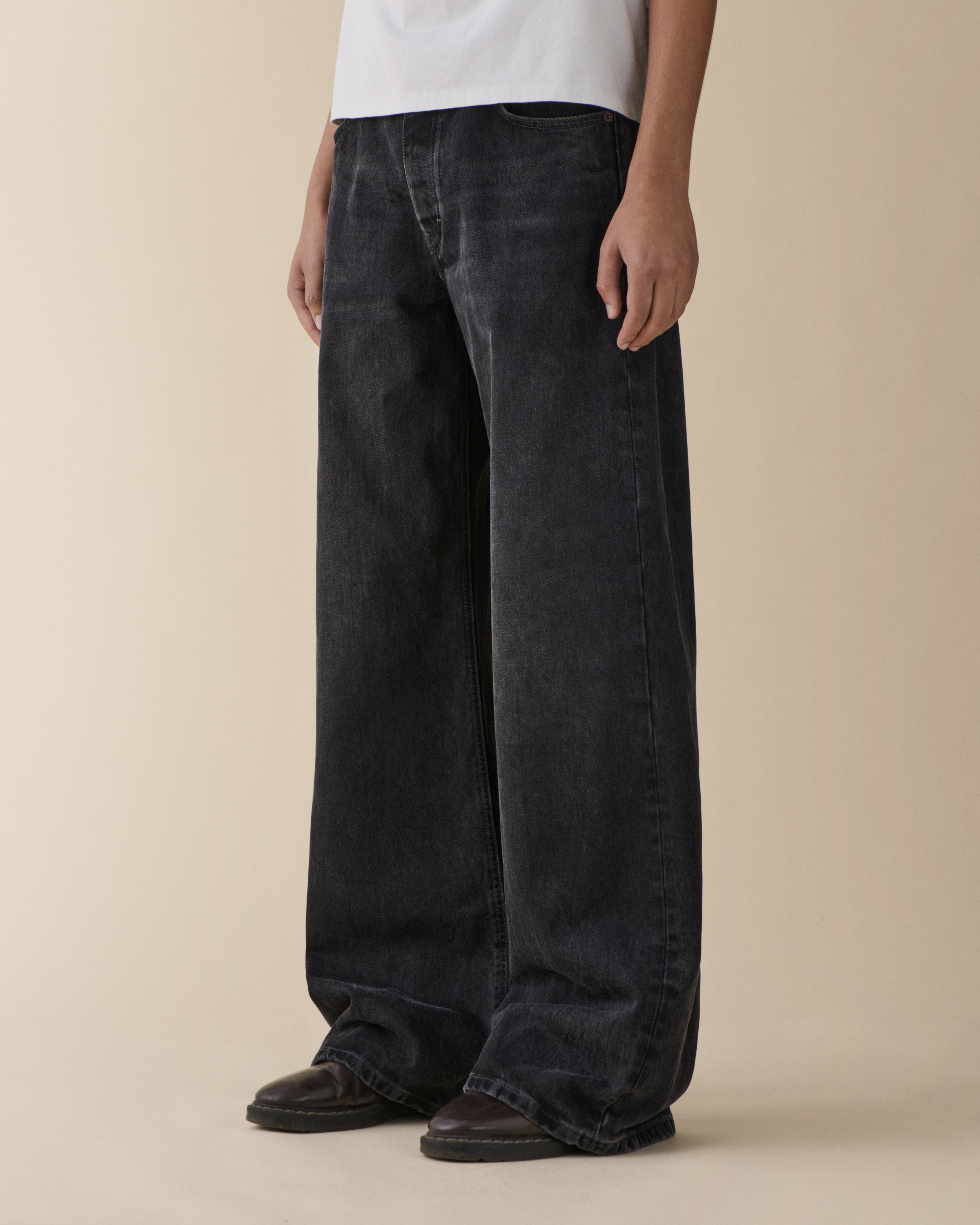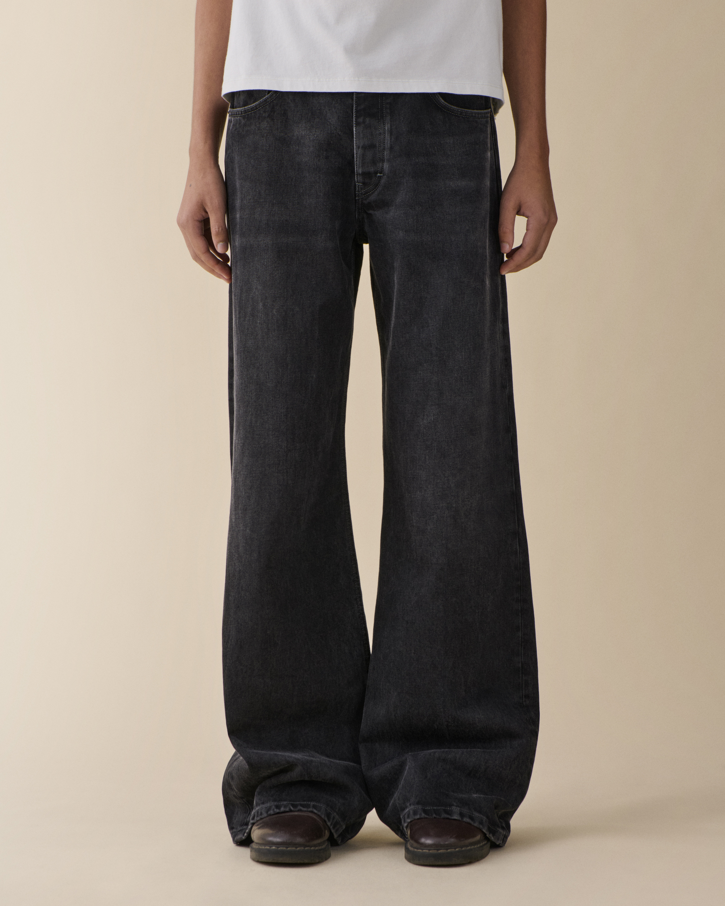'Gion' is a low-waist denim with a relaxed, flared silhouette. Features a low rise fit that sits comfortably on the hip with a loose cut through the thigh.Model is 188 cm/6'2” and wears waist 31 and length 34.True to size.