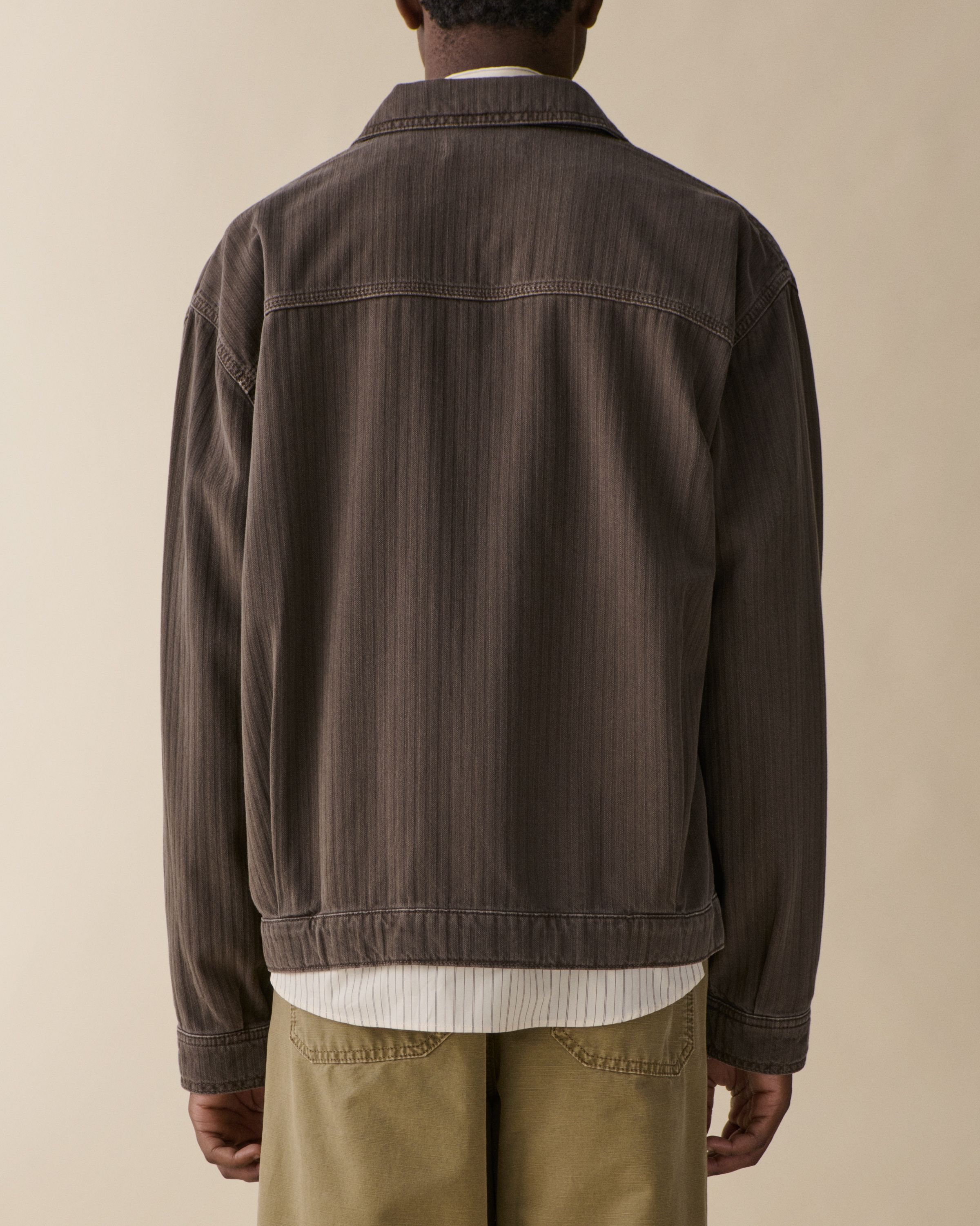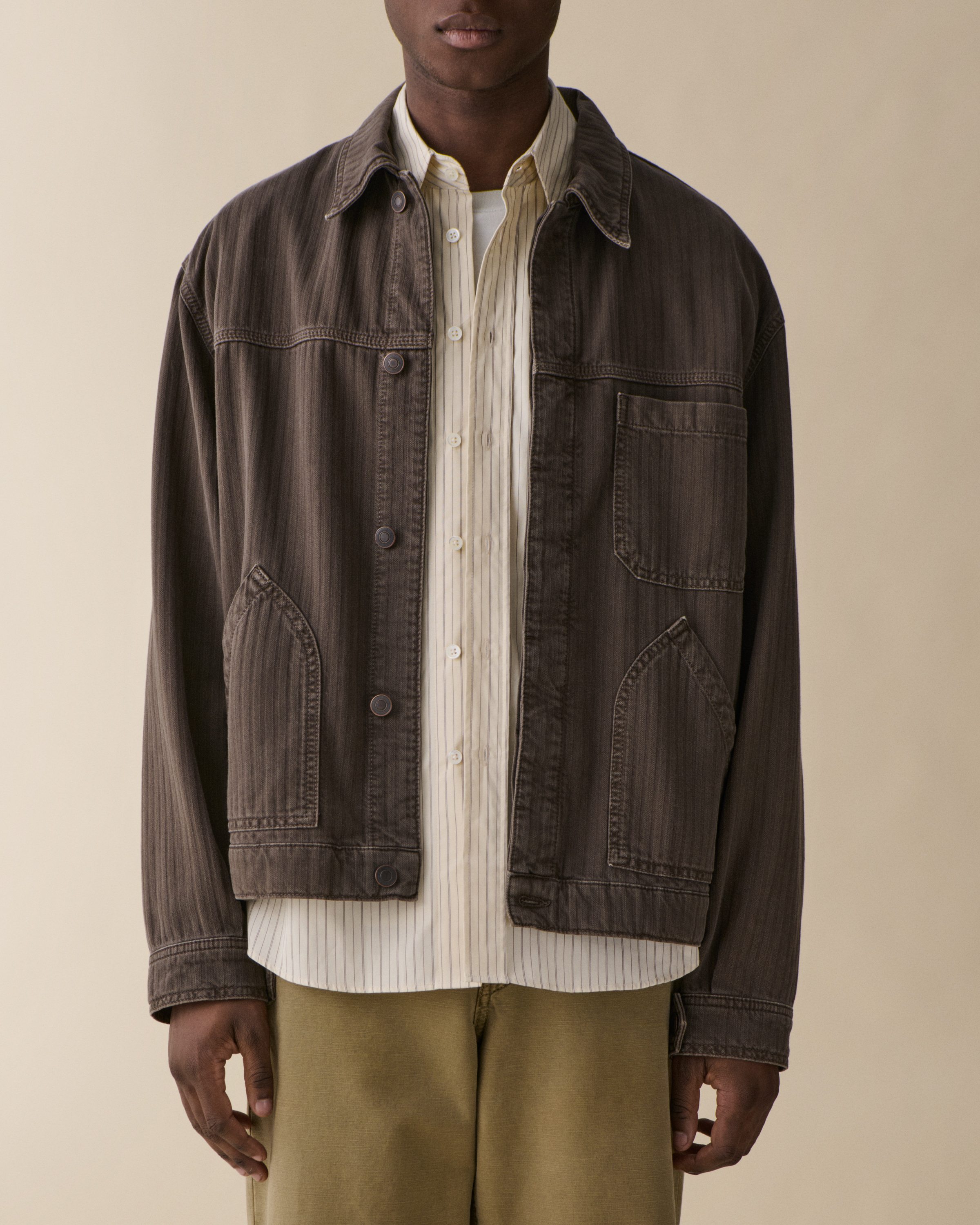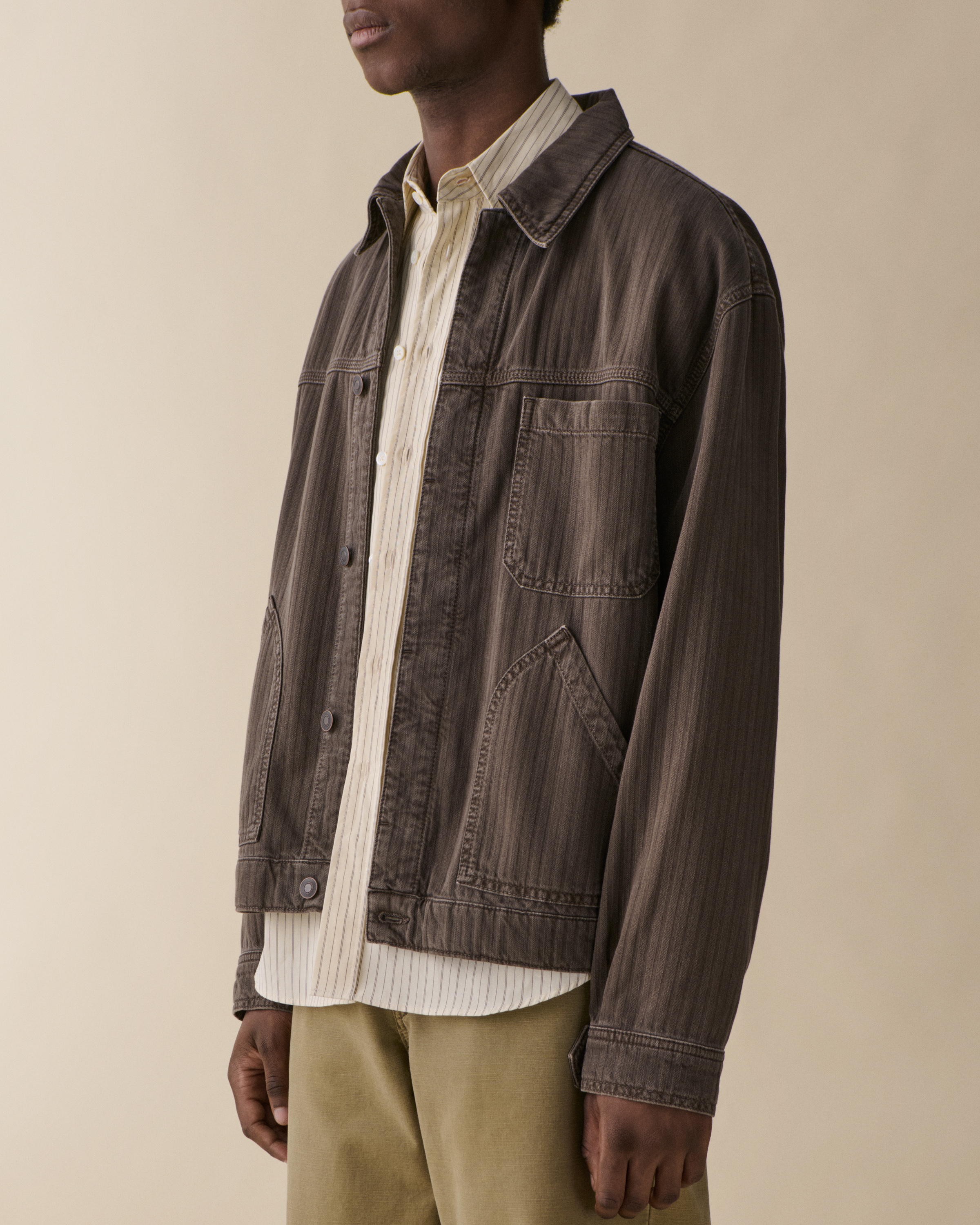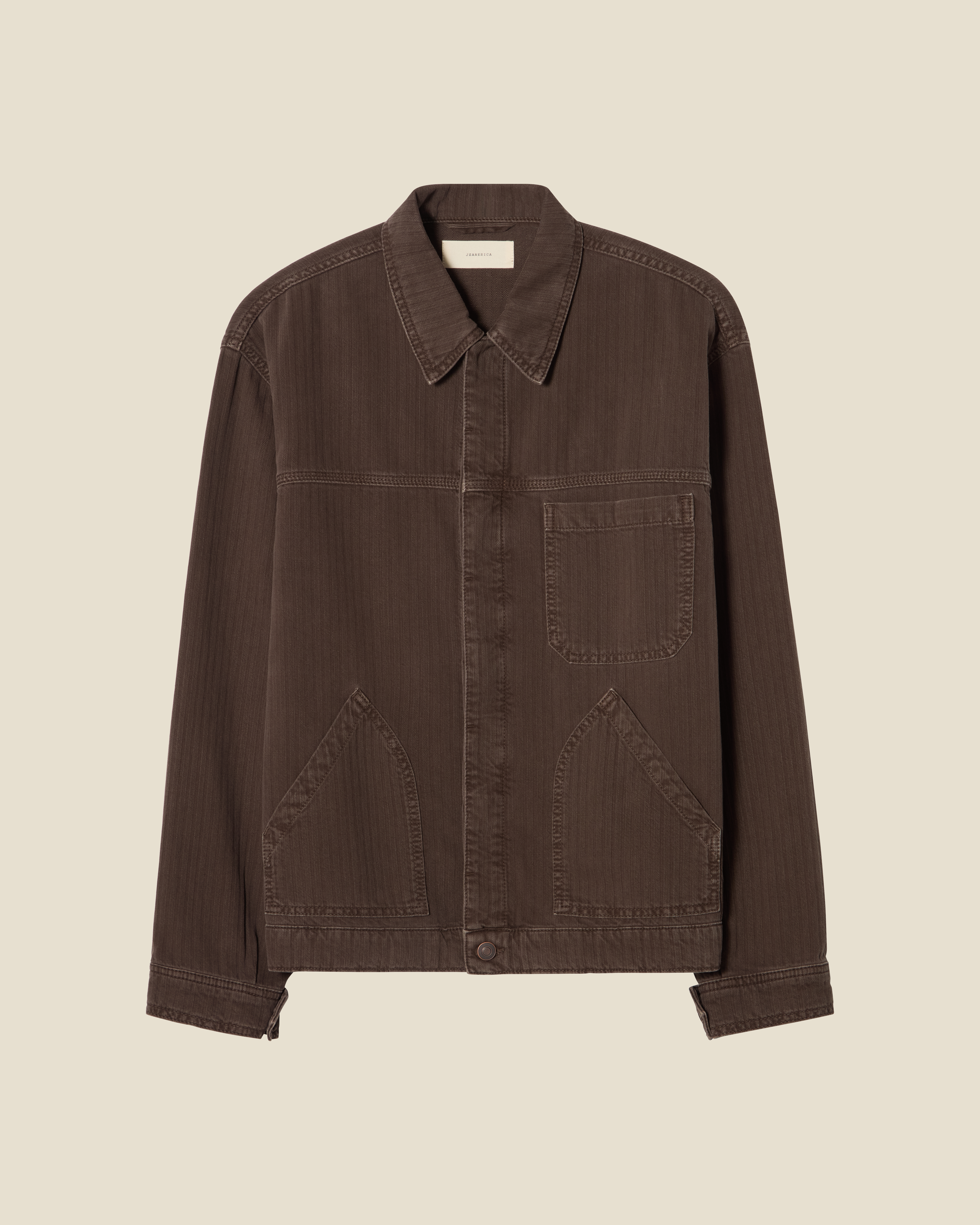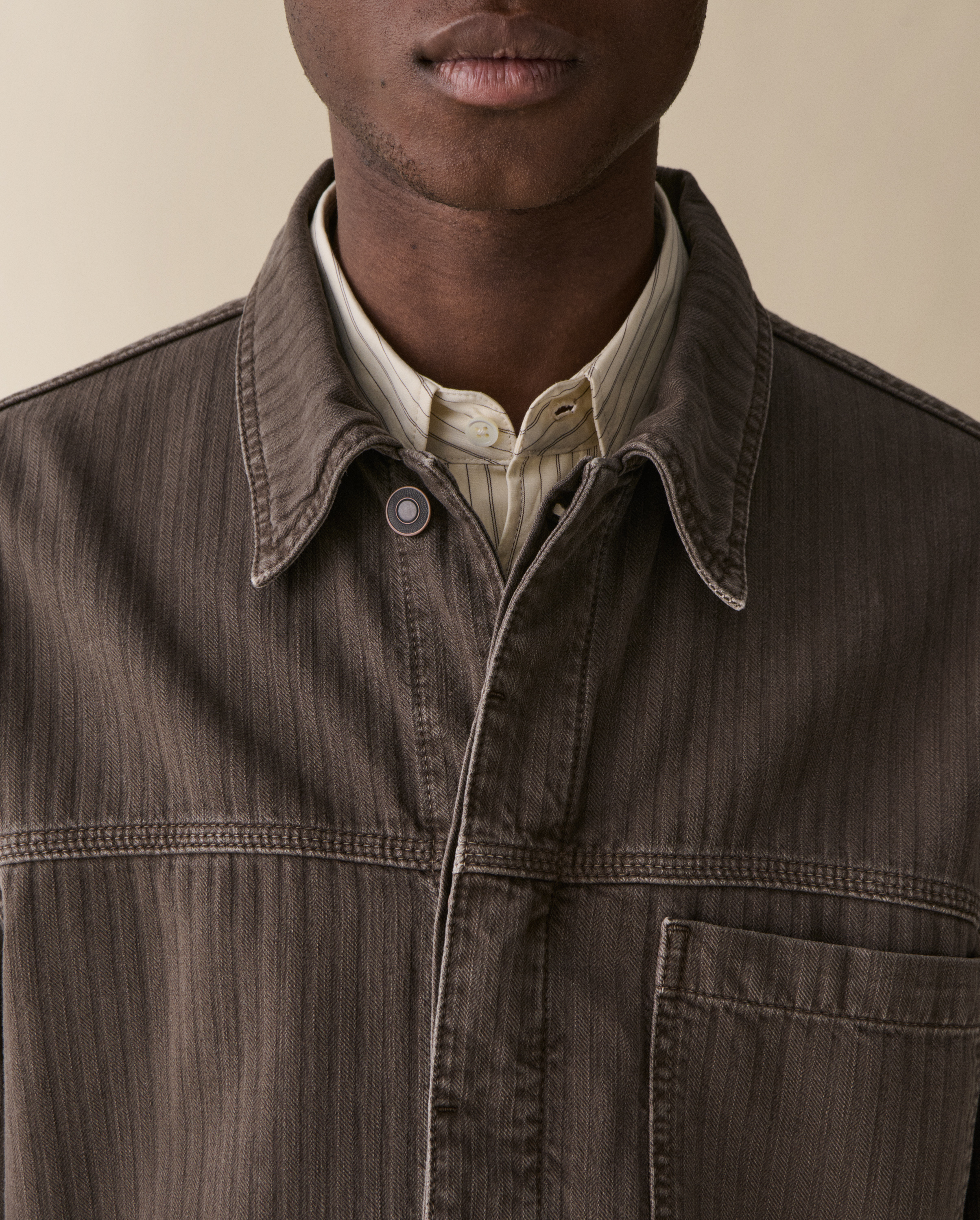 'Noa' is a contemporary denim jacket featuring a hidden button closure and distinctive triple stitching at the yoke for a clean, refined silhouette. Crafted from a durable blend of 58% cotton, 23% polyester, and 19% viscose, this jacket offers both structure and comfort. The Chevron Brown finish provides a rich, versatile color that pairs effortlessly with both light and dark denim. This timeless piece combines workwear heritage with subtle modern details, making it an essential layering option for any season.