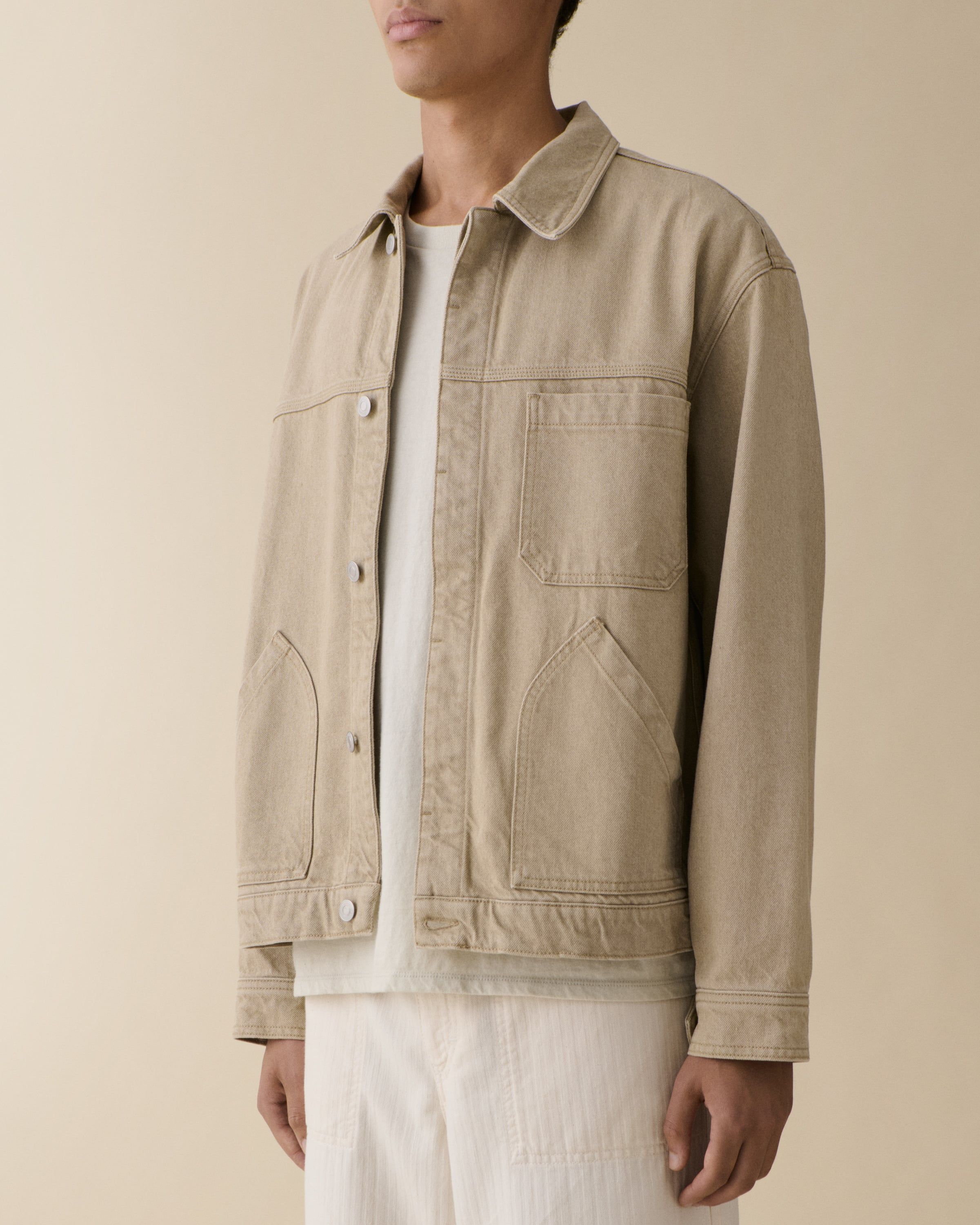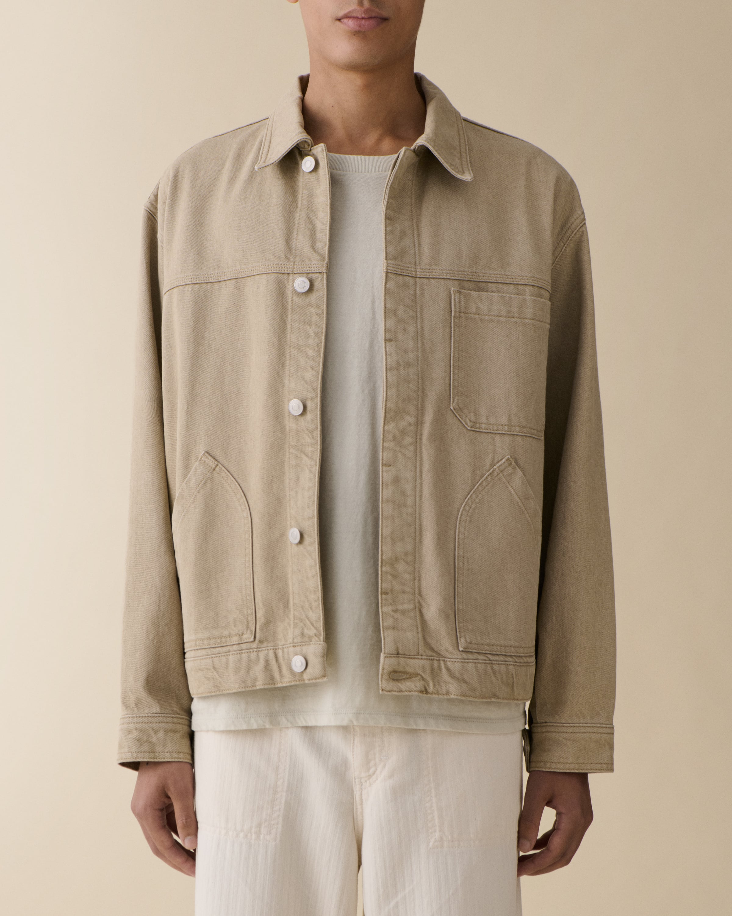 'Noa' is a contemporary denim jacket featuring a hidden button closure and distinctive triple stitching at the yoke. Crafted in a premium Mirage Rinse wash, this jacket combines classic workwear construction with subtle vintage-inspired details. Made from a durable blend of cotton and viscose that maintains its shape while offering everyday comfort and timeless appeal.