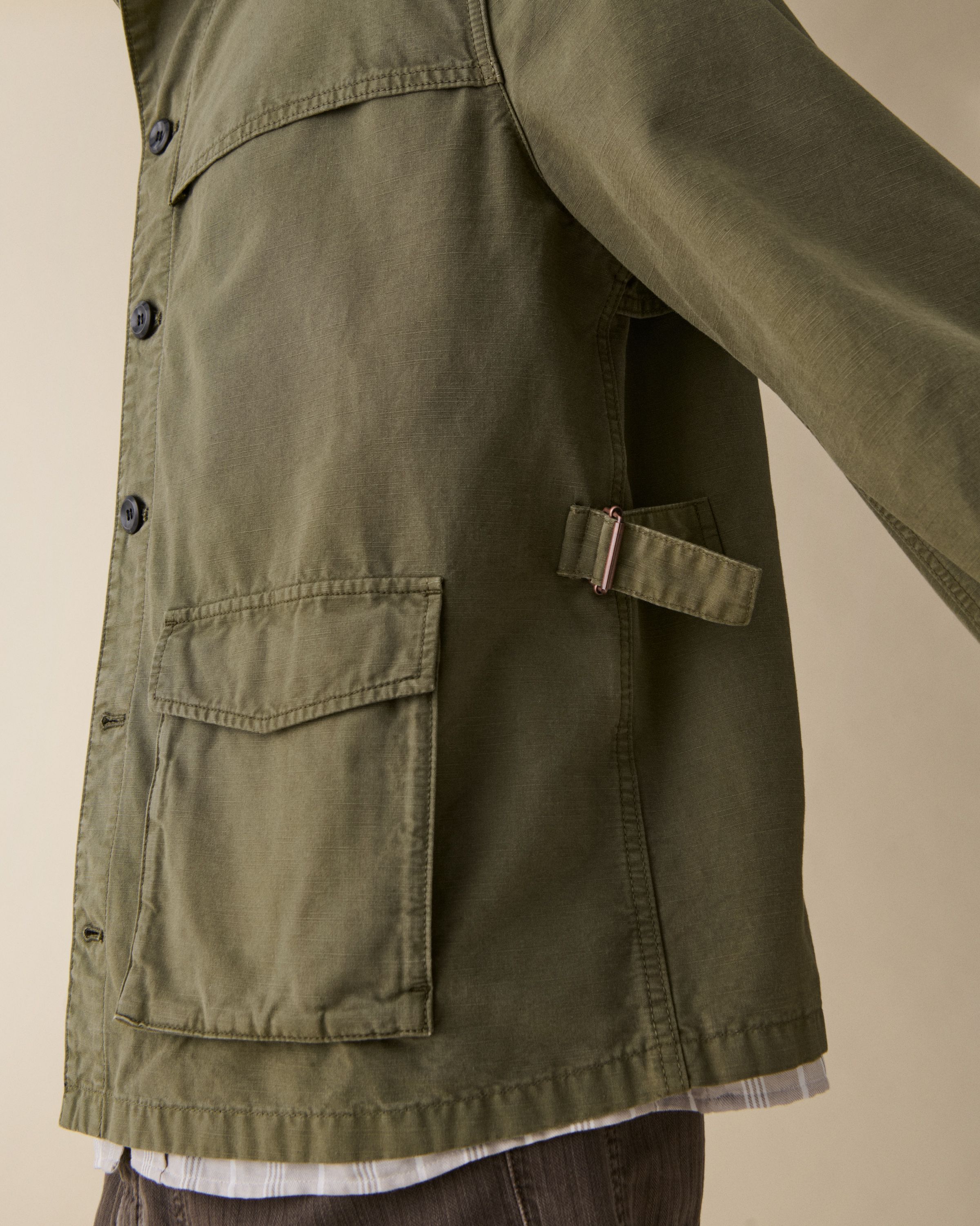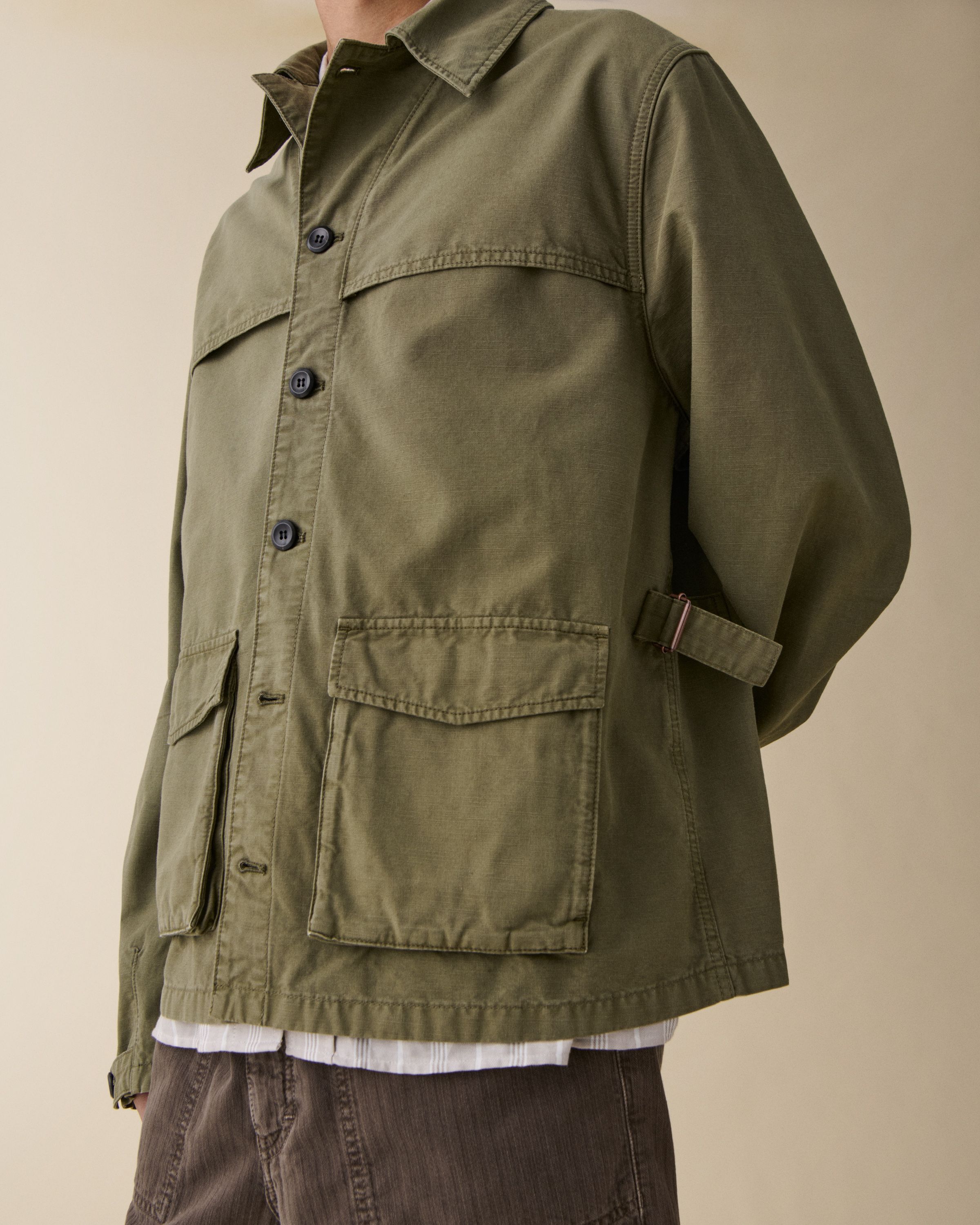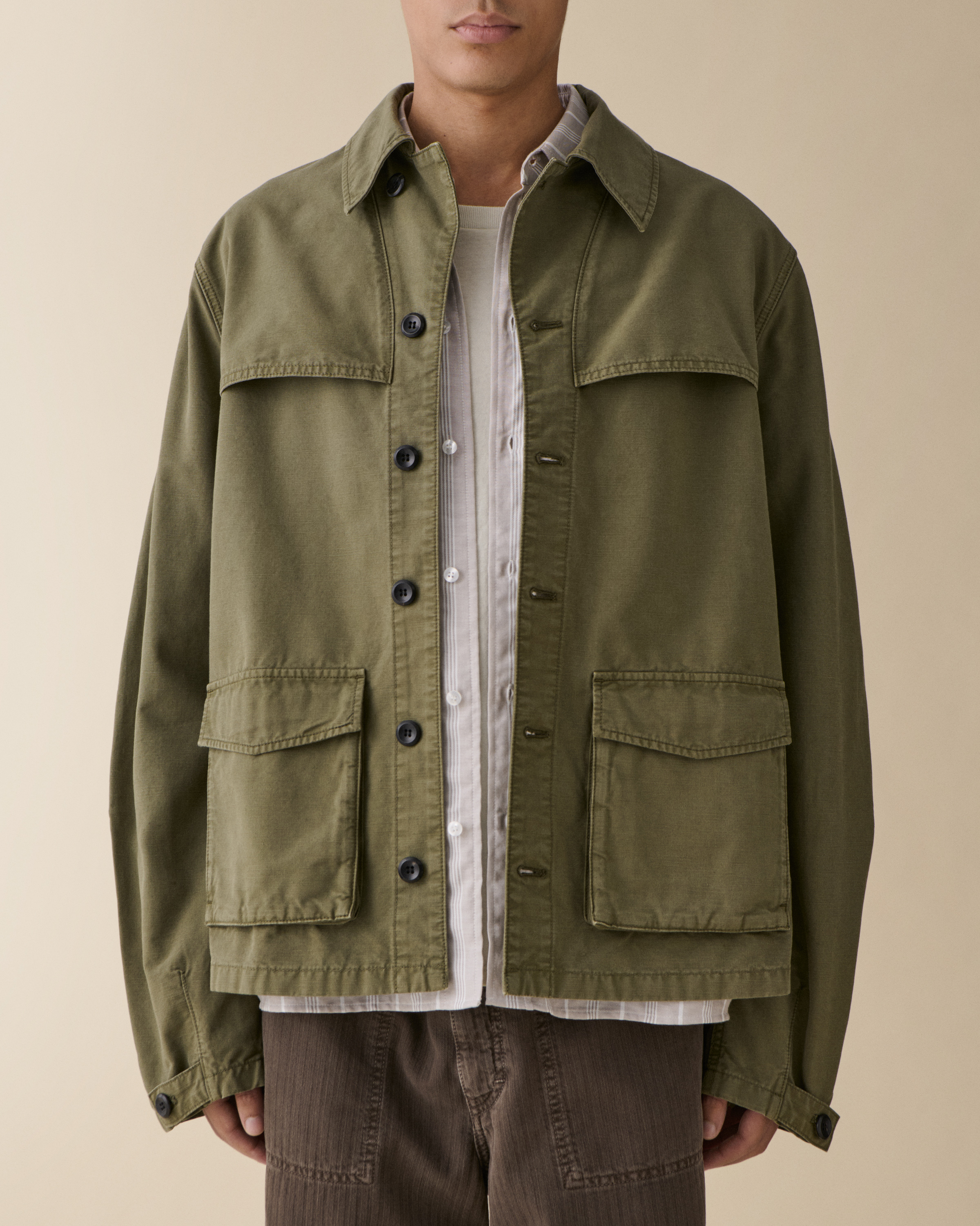 'Wilde' is a sophisticated workwear-inspired jacket featuring a relaxed fit with intricate details.