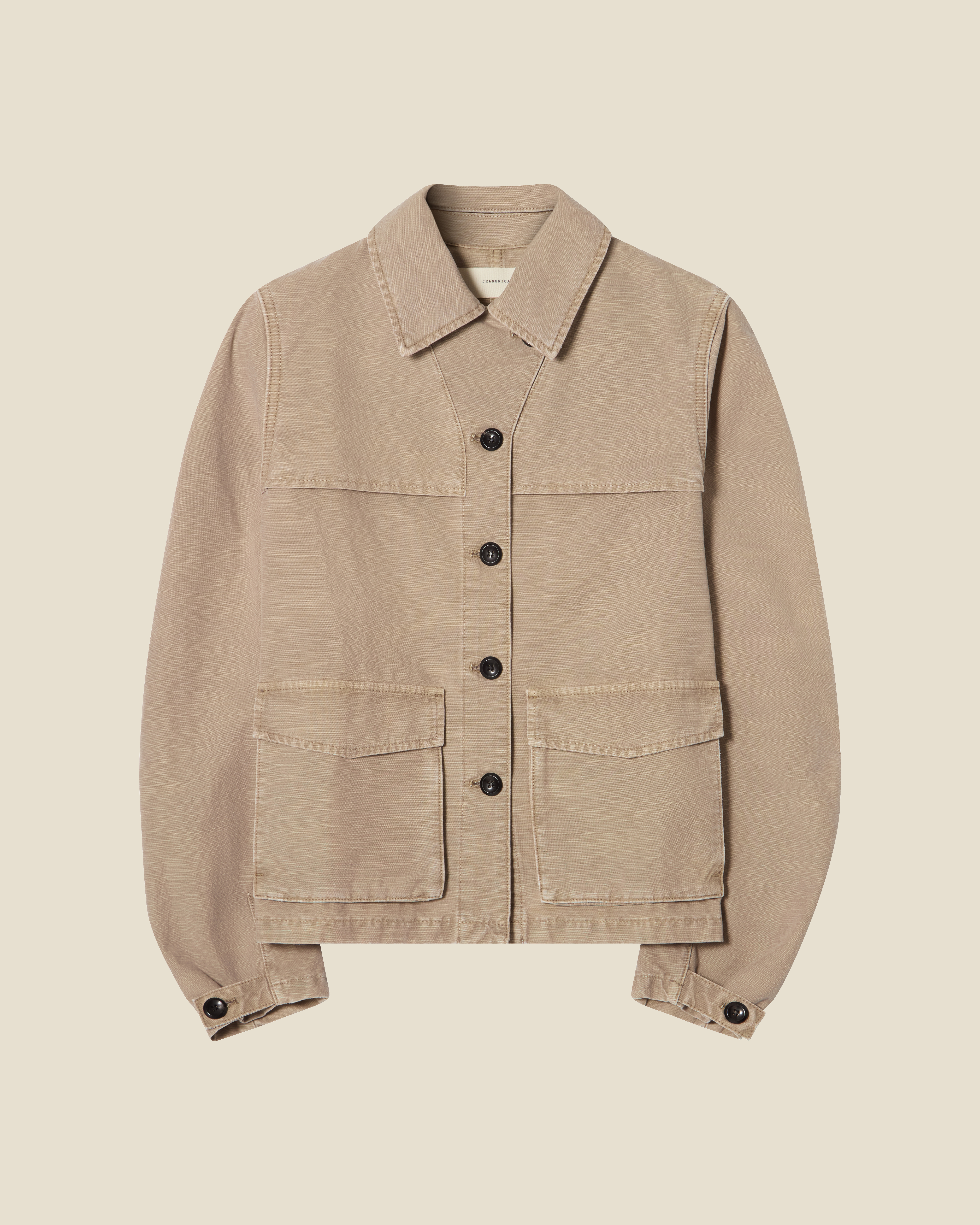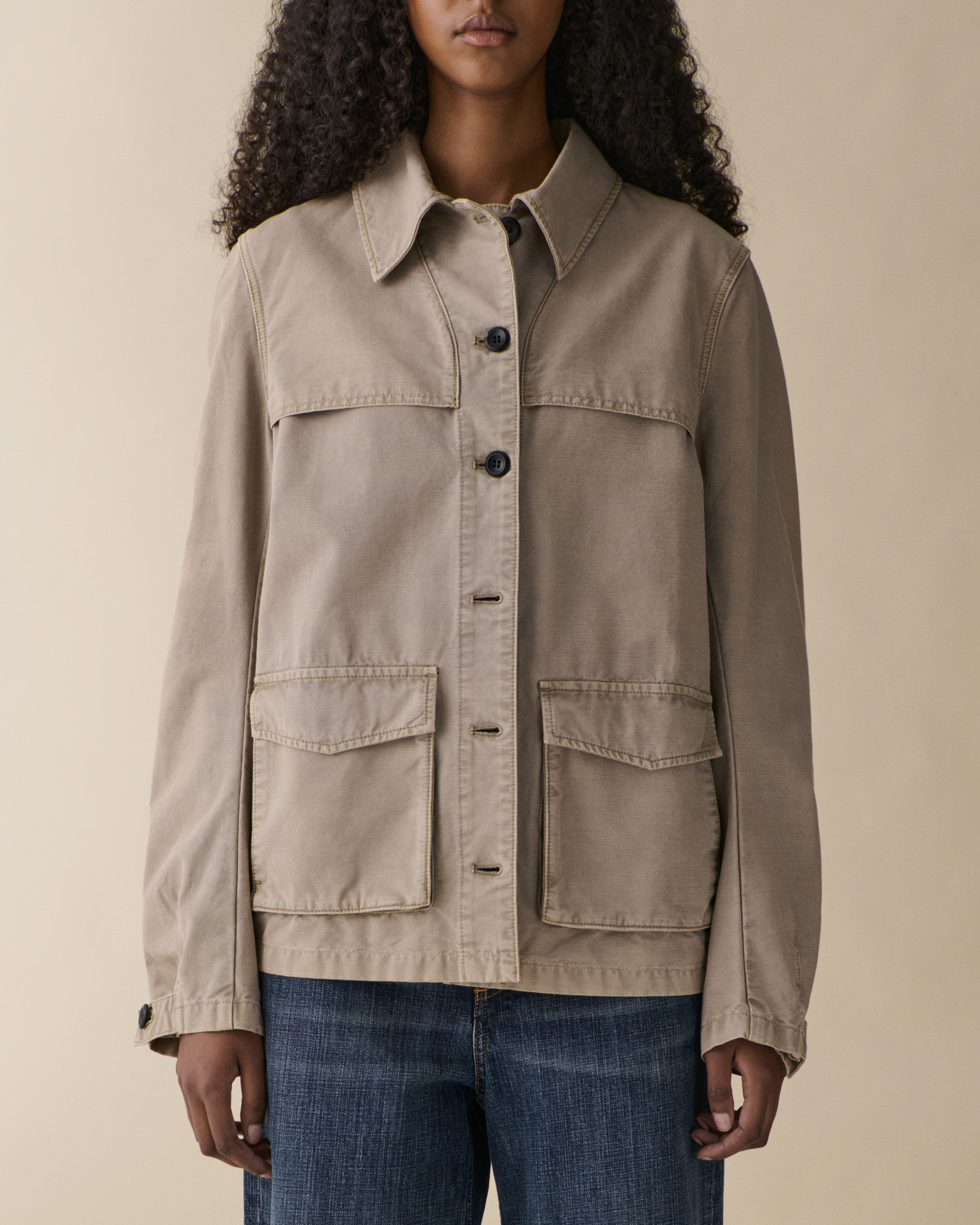 'Jasmine' is a refined utility jacket with a loose, relaxed fit that embodies classic workwear aesthetics.