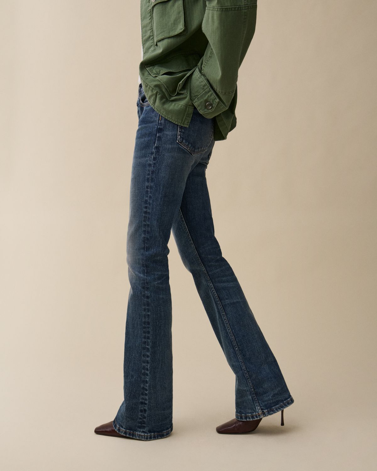 ʼModa' is a mid-rise denim with a flared leg. Featuring a fitted top and a slim leg until the knee enhancing a sleek silhouette.