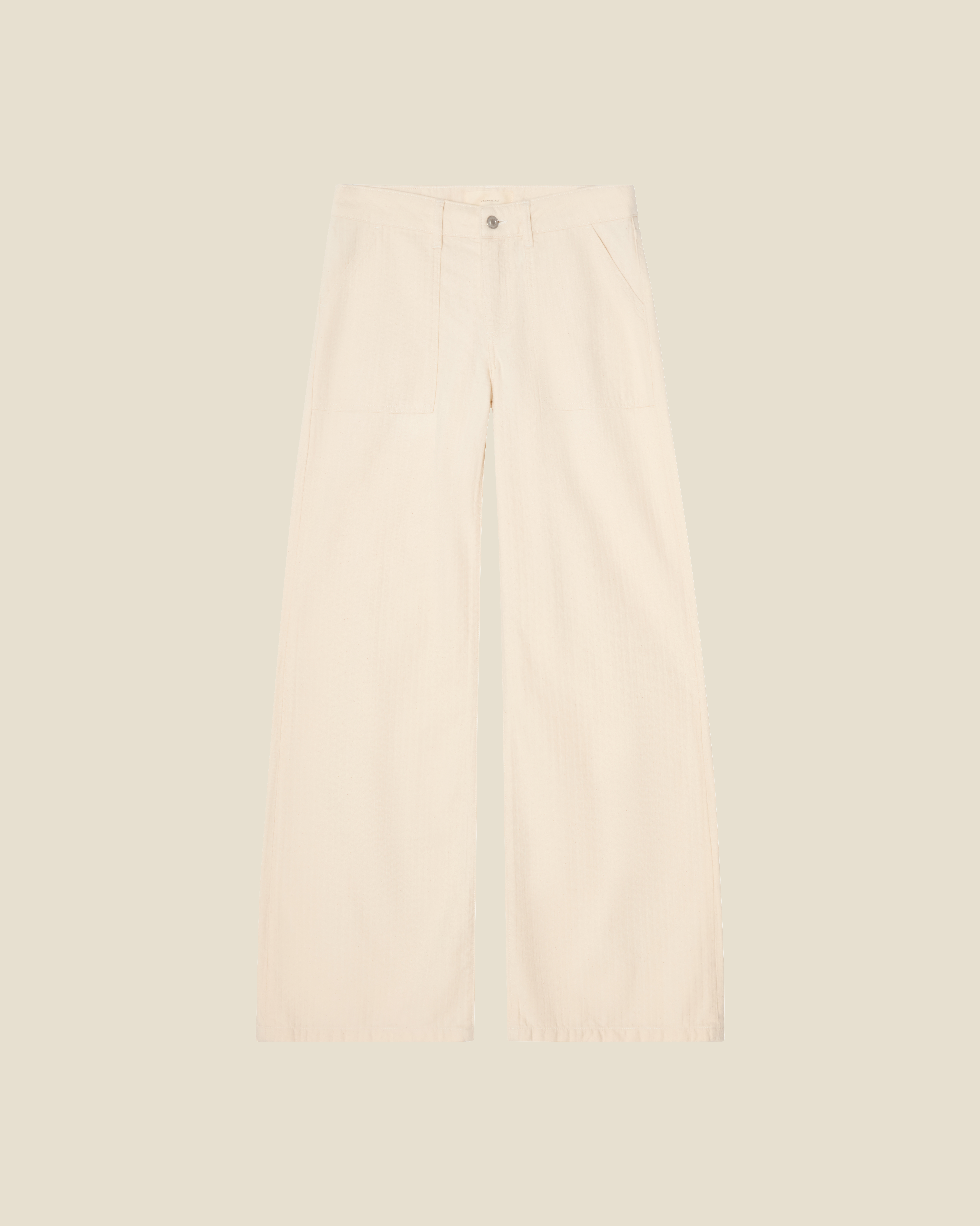 'Guell' is a carpenter-inspired flare fit with refined workwear details. It features a low-rise, extra-long loose-leg flare, front and back patch pockets.Model is 175 cm/5'9” and wears waist 26 and length 34.Runs slightly large, if in-between two sizes, size down.