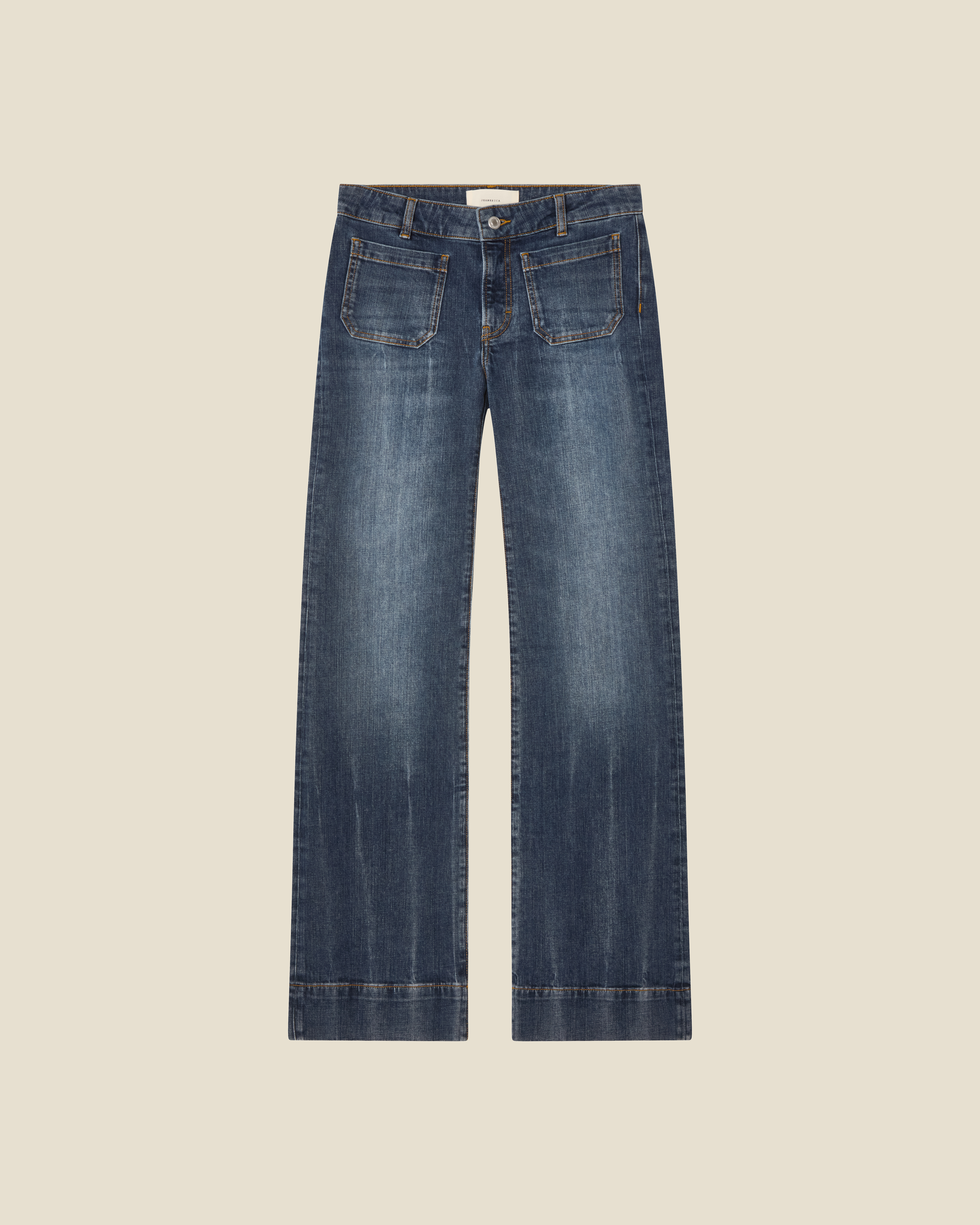 'St Monica Low' is a low-rise version of our iconic fit, which looks to sailor archives of the late 1960s with its patch pockets, flares and wide hemlines.Model is 175 cm/5'9” and wears waist 26 and length 34.Runs slightly large.