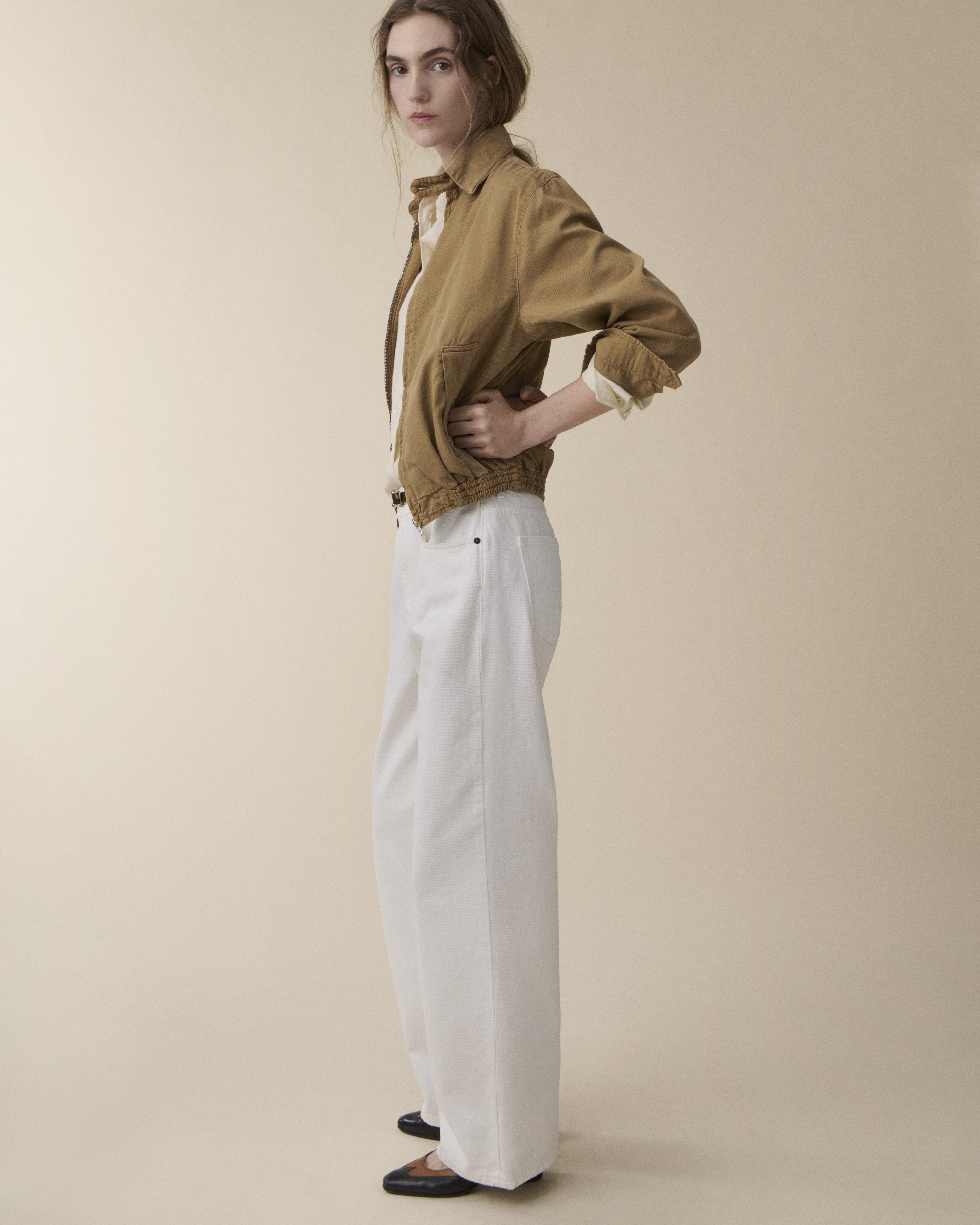 'Ricky' is inspired by the archetypical harrington jacket. Featuring a collar with tab, front zip, elastic hem, and herringbone interior detailing that balances heritage with modern simplicity.Model is 175 cm/5'9” and wears size Small.Runs small, if in-between sizes take one larger.